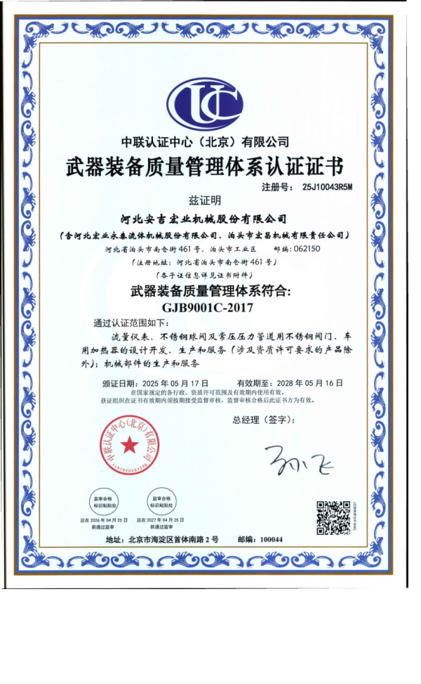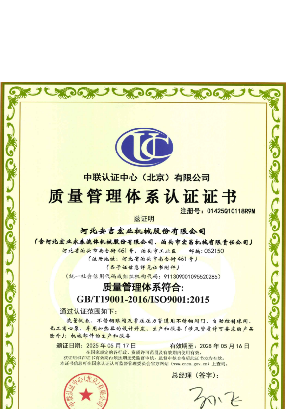 河北宏業(yè)永泰流體機(jī)械股份有限公司(原泊頭儀表總廠),生產(chǎn)流量?jī)x表產(chǎn)品有三十多年的歷史。參加了節(jié)流裝置國家標(biāo)準(zhǔn)GB/T2624-1981的起草工作。公司占地12萬平方米,注冊(cè)資金3500萬元。主要產(chǎn)品有節(jié)流裝置、儀器儀表、各類不銹鋼閥門、各種化工離心泵。公司取得了ISO9001:2015質(zhì)量體系認(rèn)證、挪威船級(jí)社CE認(rèn)證、出口產(chǎn)品Emark認(rèn)證、特種設(shè)備制造許可證等。同時(shí)河北宏業(yè)永泰還是中石化物資供應(yīng)商網(wǎng)絡(luò)成員,取得了中石油、中海油物資供應(yīng)商準(zhǔn)入證,是中國神華集團(tuán)、華電集團(tuán)、大唐集團(tuán)、中廣核等公司合格供應(yīng)商。產(chǎn)品出口日本、阿爾及利亞等國家。